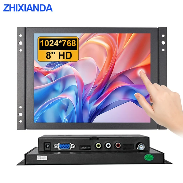 High Brightness 600Nits 8 Inch 1024*768 Open Frame Industrial TFT Touch Screen Monitor VGA HD VESA Resistive Touch LCD Display