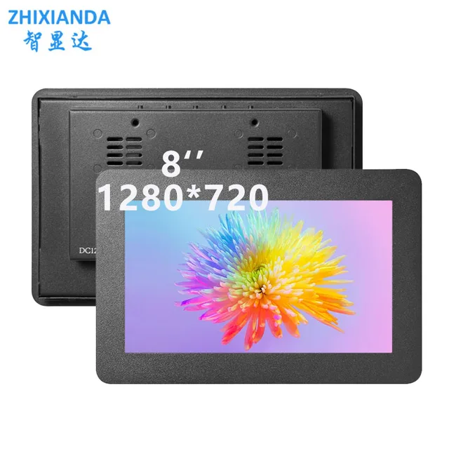 Widescreen 8 Inch 1280*720 Wall Mount LCD Touch Screen Display Embedded Monitor Metal Case for Industry with BNC AV HD VGA Port