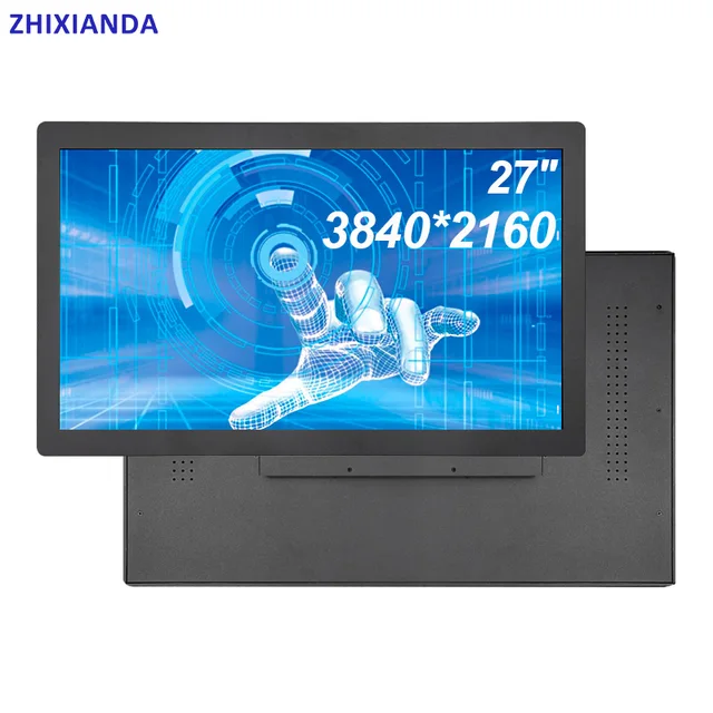 ZHIXIANDA 27 Inch 3840*2160 4K Lcd VESA Panel Metal Embedded Mount Touch Screen Monitor Display for Industrial